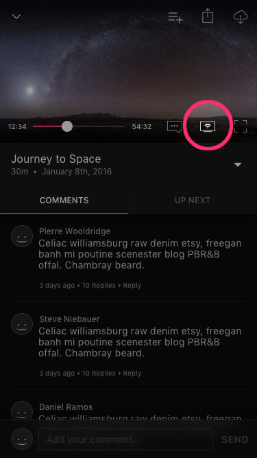 - When you start playing a video, tap the "Cast" icon that appears in the video player controls